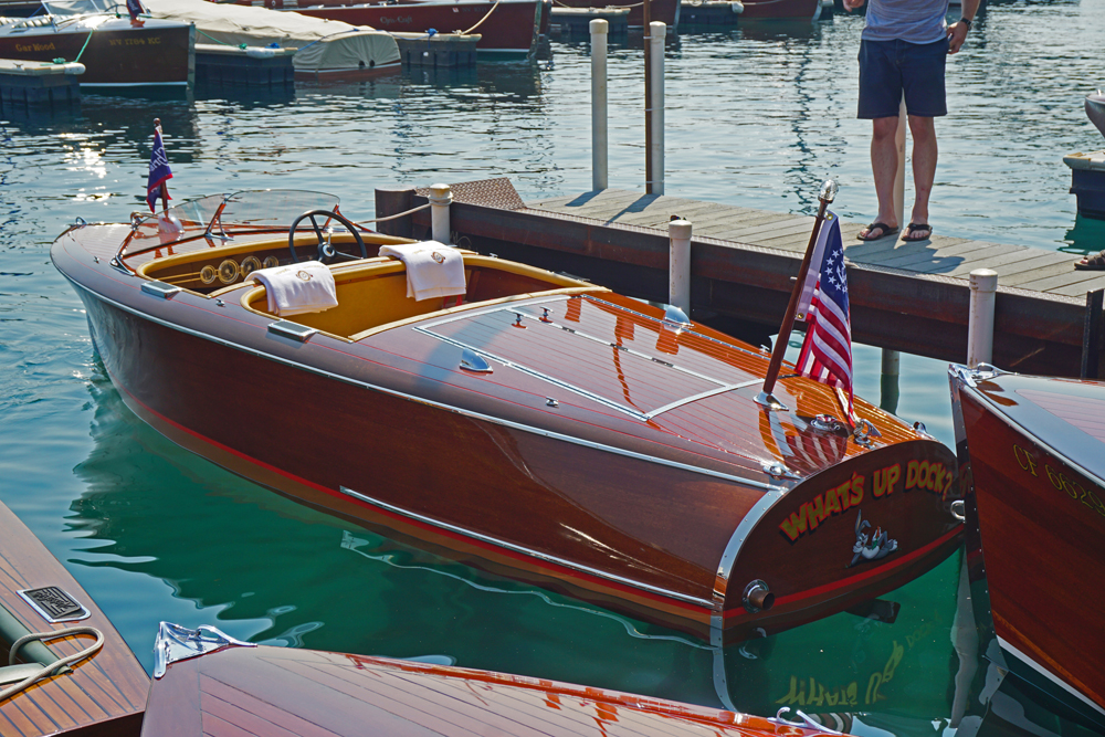 1940 Chris Craft 17ft. Deluxe Runabout : This boat was delivered to the Chris Craft Dealer Lake Delavan Illinois in 1940. It found it's way to Santa Barabra California and sat for 20 years before it was sold to the present owners, Dr. and Mrs. Tom Spillner of Vacaville Ca. After a lenghty restoration by Pleasurebent Boats, she took 1st place at the Tahoe Boat Show August 2018.